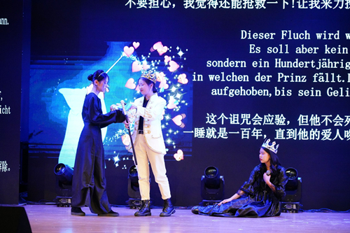 iBAND的Still breathing伴随着动感的伴奏点燃了全场。英语182重现了《音乐之声》经典片段,温暖动人,英语191的舞台剧The Snow White的小演员们表现惊艳,引来观众赞叹声不断。德语181的新颖配音《德国新声》展现了我院德语学子的扎实功底,更融入了对老师们的深情表白,获得全场如潮掌声。