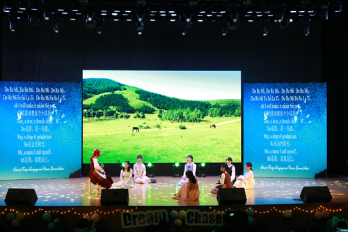 我院学生组合 fifth Vane 带来了阿卡贝拉Words, 让我们沉醉于音乐的魅力。计算机国际班德语完美演绎《我们的2+3》,走近我们的奋斗之梦。压轴节目是英语183带来的英文版《我和我的祖国》庆祝建国七十周年,回顾一年,青春展望,家国情怀。