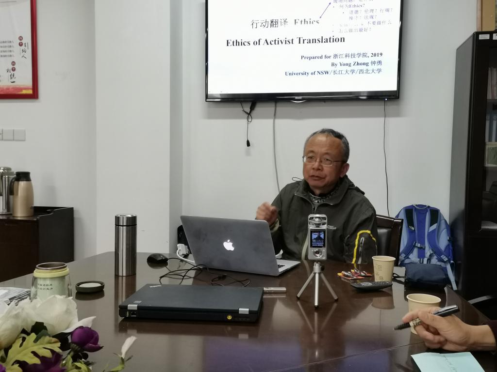 12月6日(周五)下午,应外国语学院/成人视频 的邀请,新南威尔士大学钟勇教授在闻理园A3-306作了题为“行动翻译操守:基于三个个案的分析”的主题讲座,我院翻译研究所成员和英语专业学生参加了此次讲座,讲座由外国语学院/成人视频 院长朱吉梅教授主持。