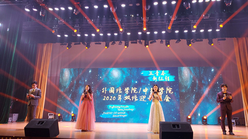 2020年12月20日,我院“FIGHTING YOUTH NEW JOURNEY”双语迎新晚会在安吉校区大学生活动中心举行。学院领导班子成员、系主任、教师代表、班主任和辅导员参加,全院师生共聚一堂,赏青春风采,迎学院新气象。