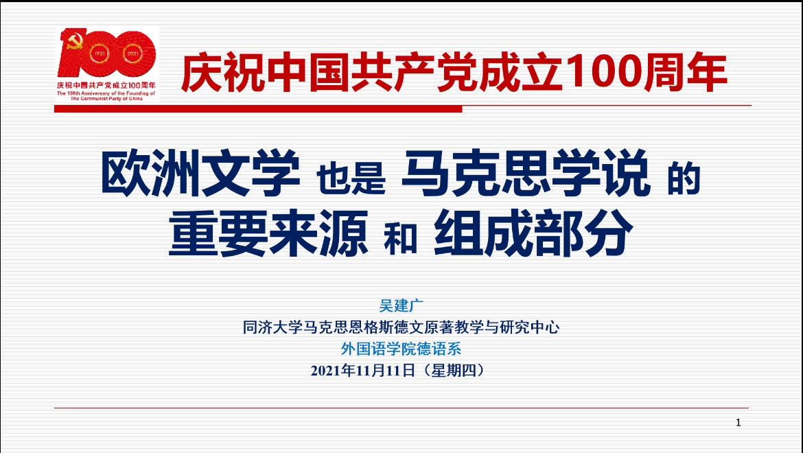 2021年11月11日,同济大学外国语学院德语系吴建广教授作客我院中德荟讲坛,云端开讲题为“欧洲文学作为马克思学说的重要来源和组成部分”的学术报告,成人视频