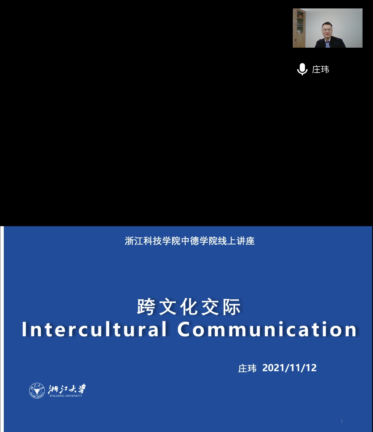 2021年11月12日,浙江大学外语学院德国学研究所 “百人计划”研究员、博士生导师庄玮副教授作客我院中德荟讲坛,云端开讲题为“跨文化言语交际﹑非言语交际和跨文化能力模型”的学术报告。成人视频 全体德语教师、德语专业高年级学生聆听了报告。讲座由成人视频 德语系主任林方副教授主持。