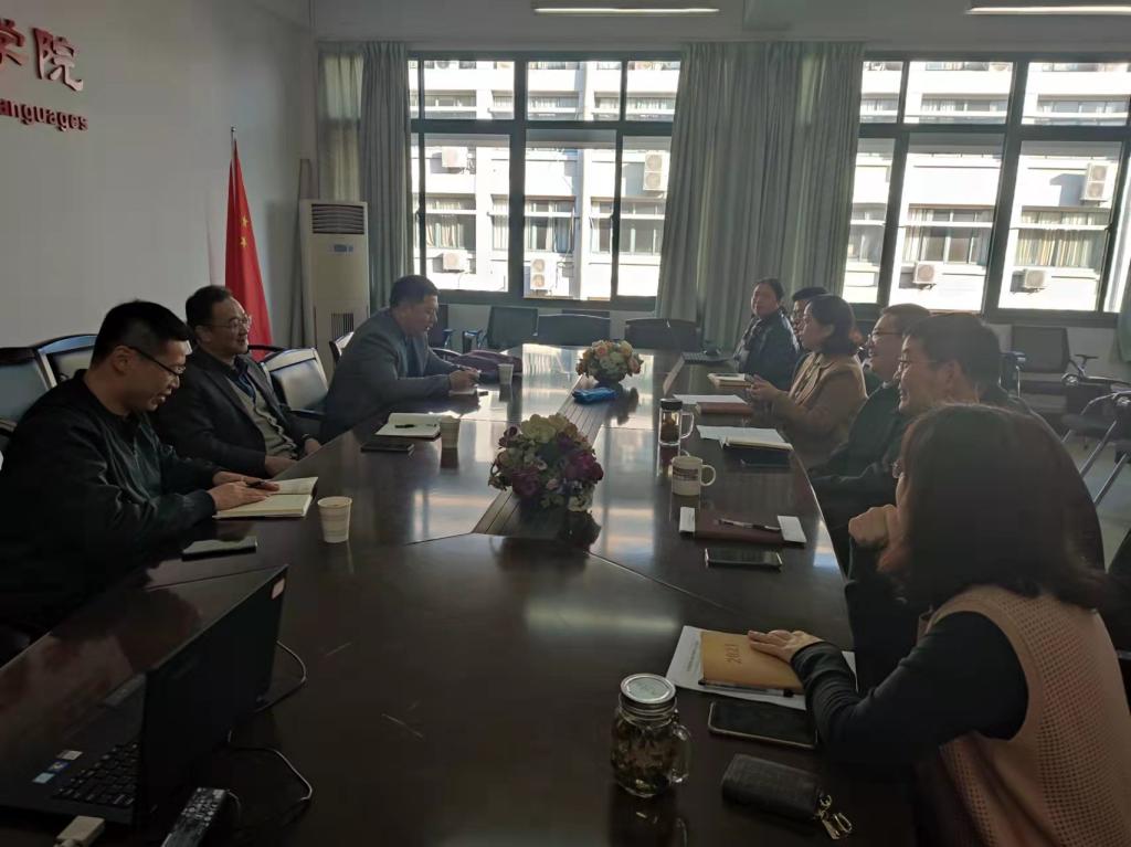 11月12日上午,校党委委员、副校长冯军来成人视频 、外国语学院走访调研。科研处负责人陪同,成人视频 、外国语学院党政班子成员参加。