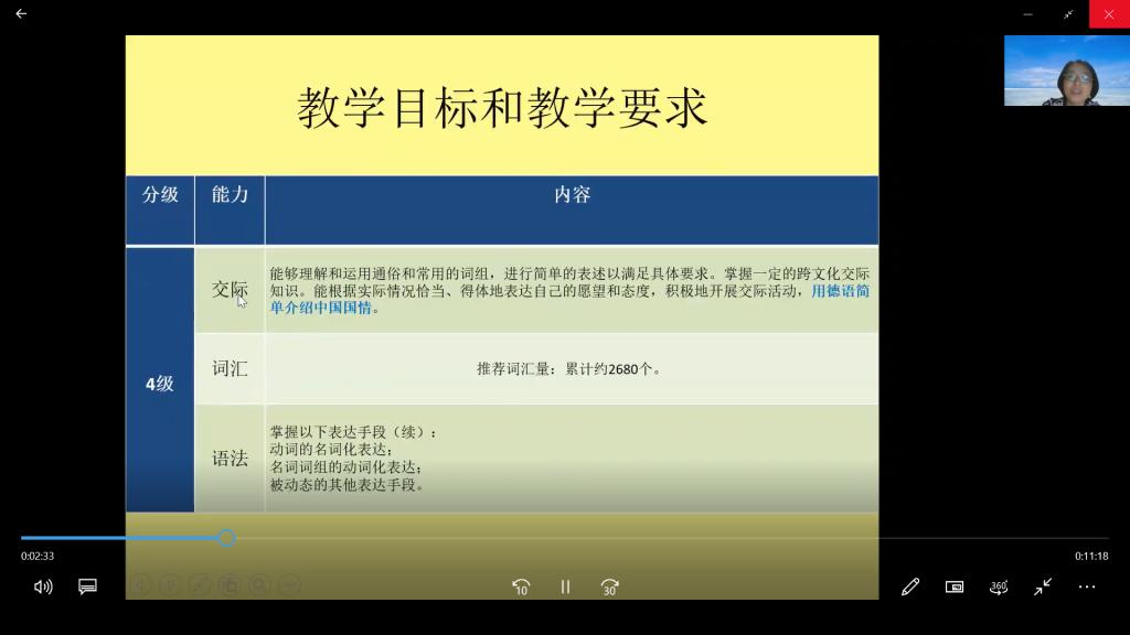 4月21日,“中德芸”讲坛暨成人视频 教学沙龙第七期如期举行, 同济大学教授、博士生导师,国际洪堡奖获得者,首批国家级一流本科专业建设点负责人,教育部首批虚拟教研室负责人赵劲老师以“第二届“德语桥”—TestDaF、PGG之外的德语考试 大学德语四级考试样题解读”为题作专题报告。我校成人视频 40余位师生参加了在线会议。