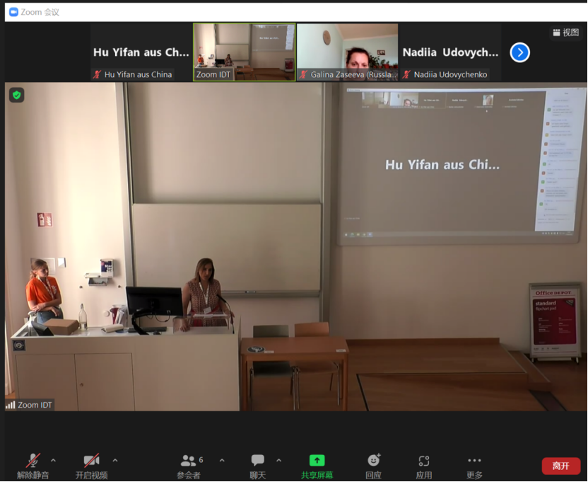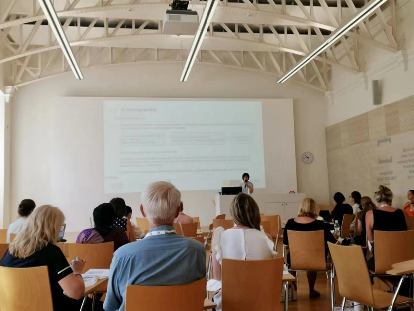 我院俞丹老师参加了现场会议,并在第一分会场作了题为“Ist das lineAR – Laborgespräche zwischen chinesischen Studierenden und deutschen Lehrkräfren”的主题报告。胡一帆博士以“Die Einführung von Yu Huas Werk in den deutschsprachigen Buchmarkt: Akteure, Strategien, Rezeption”为题,在文学组通过线上的方式与来自世界各地的德语教师交流分享。