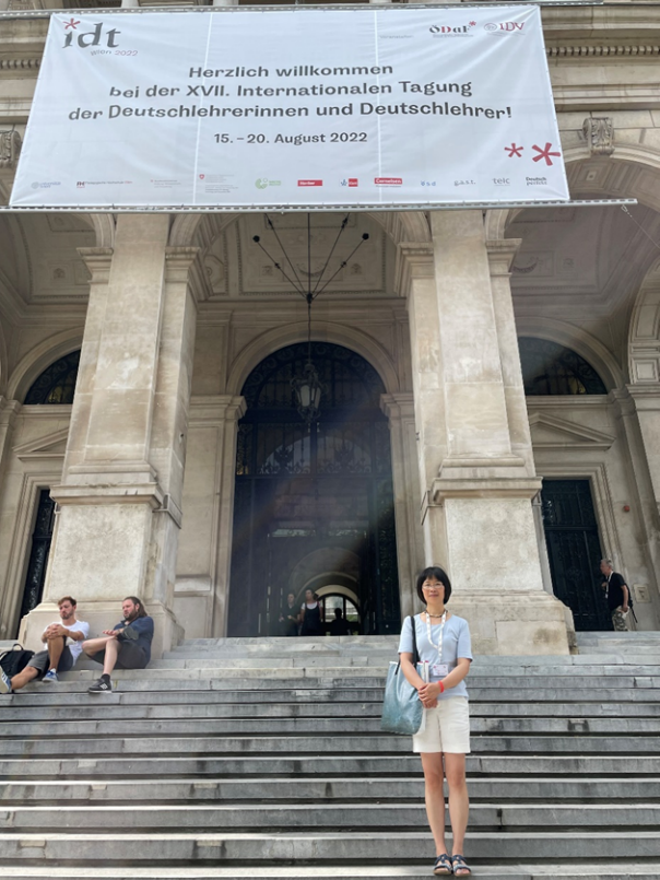 8月15日至20日,第17届国际德语教师大会(Die Internationale Tagung der Deutschlehrerinnen und Deutschlehrer,简称IDT)在奥地利首都维也纳举行。国际德语教师大会是全球最大的德语作为外语和第二外语的论坛,首届于1967年在德国慕尼黑举办,自1989年以来每四年举行一次。此次会议因疫情延期一年举行,并采用了线上线下相结合的方式,共有来自120多个国家和地区的2500名德语教师和专家学者注册参会。我院胡一帆博士和俞丹老师参加了此次会议并做报告发言。
