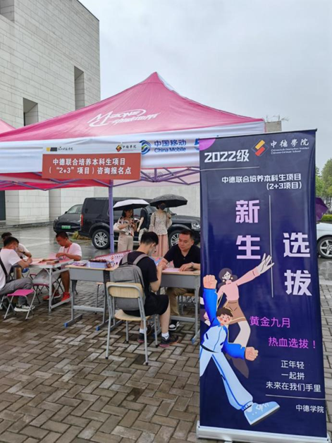 同时,学院的老师也在广场上设好了报名咨询点,为有意参加我院中德联合培养本科生项目(2+3项目)的同学服务。