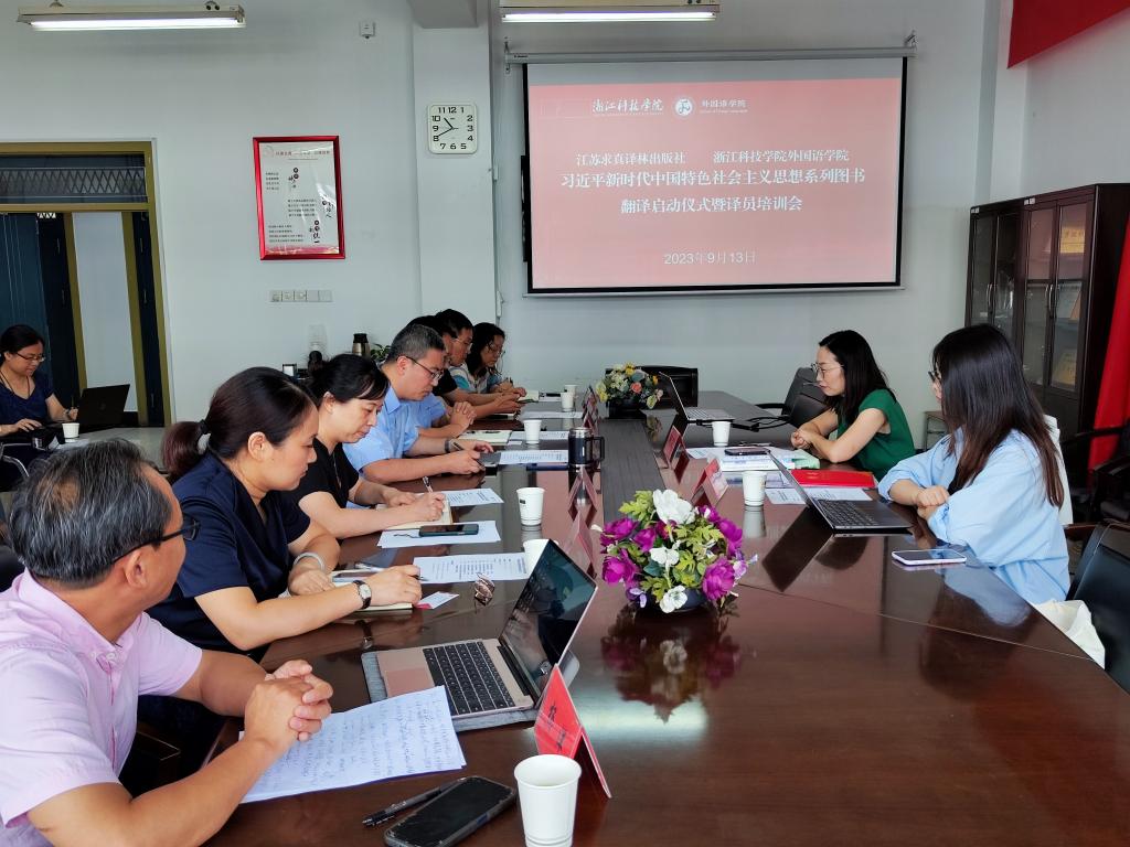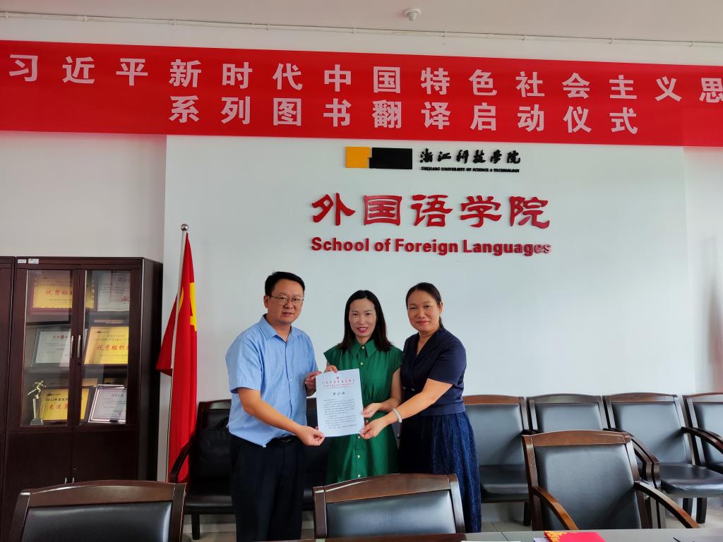 校党委宣传部副部长何俊杰、校科研处副处长楼天宇代表学校共同接收我校翻译团队参与翻译项目的邀请函,宣布我校翻译项目启动。樊燕龙院长指出外国语学院将深入学习贯彻习近平新时代中国特色社会主义思想和党的二十大精神,发挥外语人的学科特长,讲好中国故事。系列丛书翻译团队负责人杨洋教授表示将保质保量地完成此次翻译任务,为我院翻译硕士点的申报打下坚实的基础。启动仪式上,双方围绕系列图书翻译进行了深入的沟通和交流。