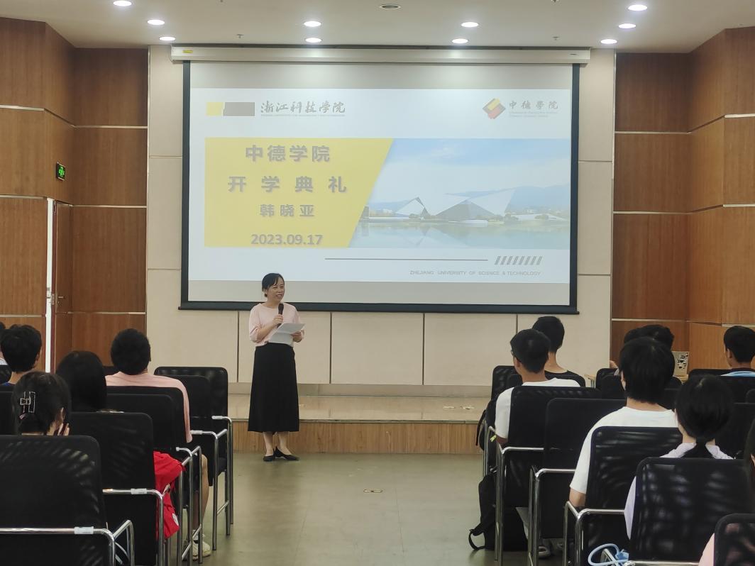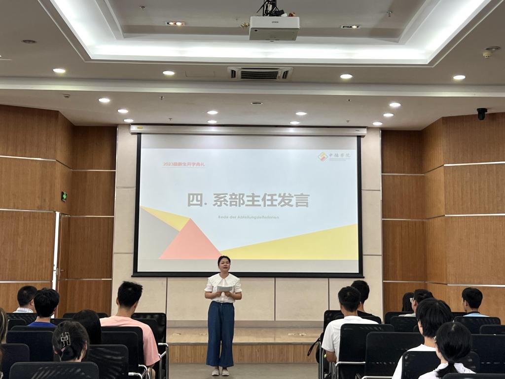 秋阳杲杲,金风送爽。2023年9月17日,成人视频 2023级新生开学典礼在安吉校区中德楼B4报告厅隆重举行。学院党政班子、各系部主任、2023级新生班主任、外教、辅导员、在校学生代表、助理班主任等共同为新生们开启人生新的征程。
