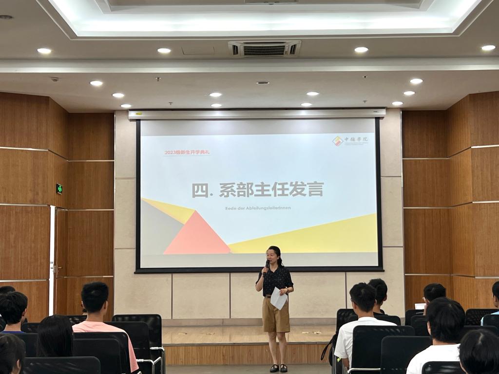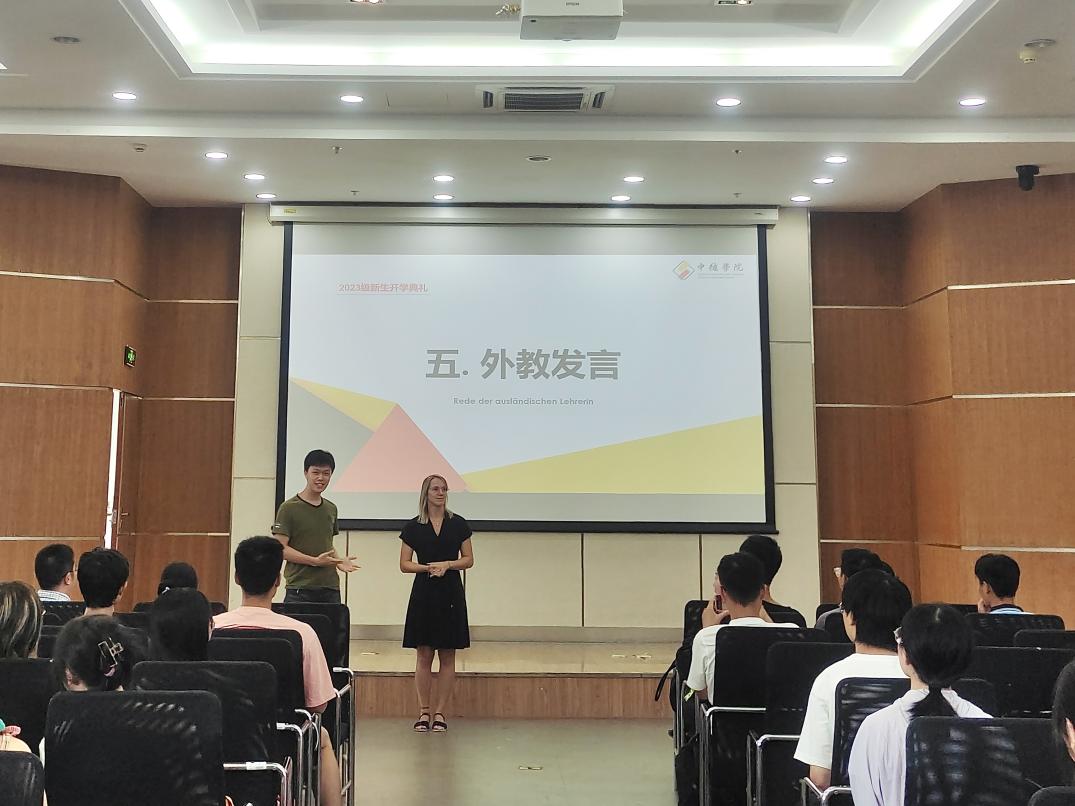 学院的外教团队亦是教师团队中的重要力量,彰显了我院的国际化办学方针,典礼上,来自奥地利的外教Daniela用德语介绍了自己,并对同学们表示热烈欢迎。