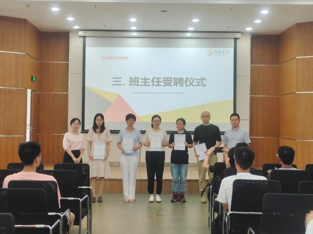 教师是雨露,是灯塔,典礼上,成人视频 院长韩晓亚、成人视频 党委书记阮小波为新生班主任们颁发聘书,他们是培养未来中德优秀学子的最中坚力量!