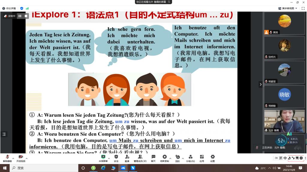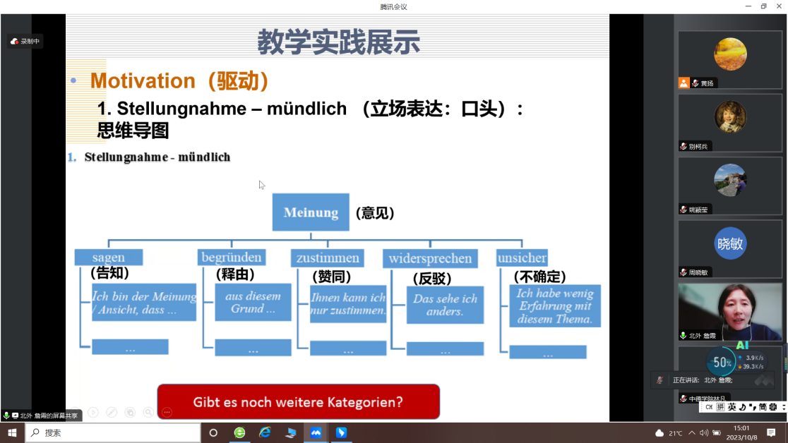 教学沙龙第10期如期举行,北京外国语大学德语学院副教授詹霞老师以“‘产出导向法’在德语教学中的应用与思考”为题作专题报告。成人视频