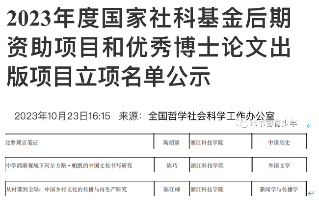 国家社科基金后期资助项目和优秀博士论文出版项目旨在鼓励广大哲学社会科学工作者弘扬优良学风,潜心治学,扎实研究,努力推出具有学术传承创新价值的精品力作,培养一批优秀青年学者,充分发挥国家社科基金在繁荣发展哲学社会科学中的示范引导作用。近年来,学院高度重视国家社科基金项目的申报工作,广泛动员、精心组织,邀请校内外专家进行多轮交流和辅导,全力支持教师申报工作,不断提升项目申报质量。本次课题的成功立项是学院持续推动教师开展科研工作的成果,有助于发挥示范引领作用,带动更多教师潜心钻研做好课题,使科研和教学相互促进、相得益彰。