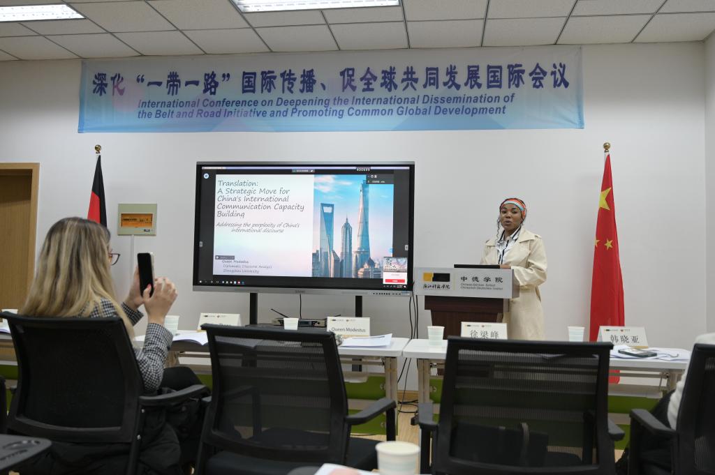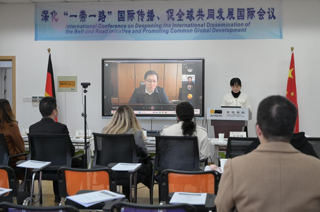 12月1日,“深化‘一带一路’国际传播、促全球共同发展”国际会议在安吉校区顺利召开。来自境内外7所高校和研究机构的专家学者和我校成人视频 及德语国家研究中心的师生通过线上线下同步会议的方式,围绕“深化‘一带一路’国际传播、促全球共同发展”这一主题,进行了热烈的学术探讨。