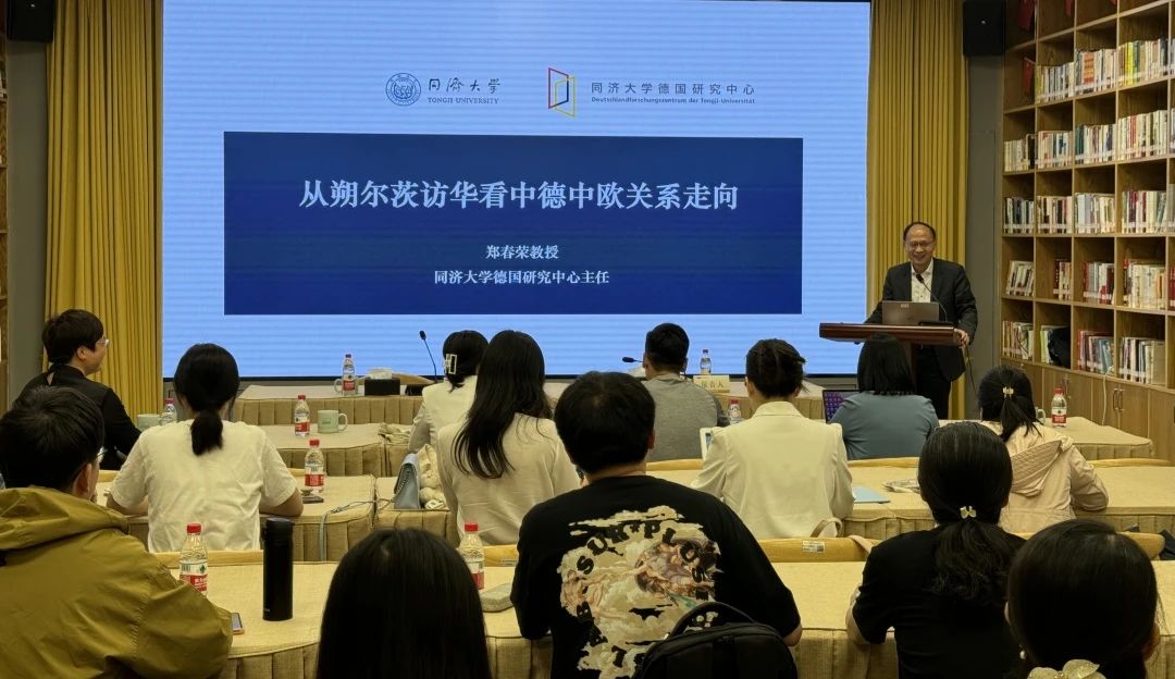 5月17日,成人视频 、德语国家研究中心邀请同济大学长聘特聘教授、德国研究中心主任郑春荣教授做客中德荟讲坛,做题为“从朔尔茨访华看中德中欧关系走向”的学术报告。本次活动由德语国家研究中心主任徐理勤研究员主持,成人视频 院长韩晓亚、国际处处长阮小波、成人视频 全体教师及德语国家研究中心相关研究人员等四十余人聆听了本场报告。