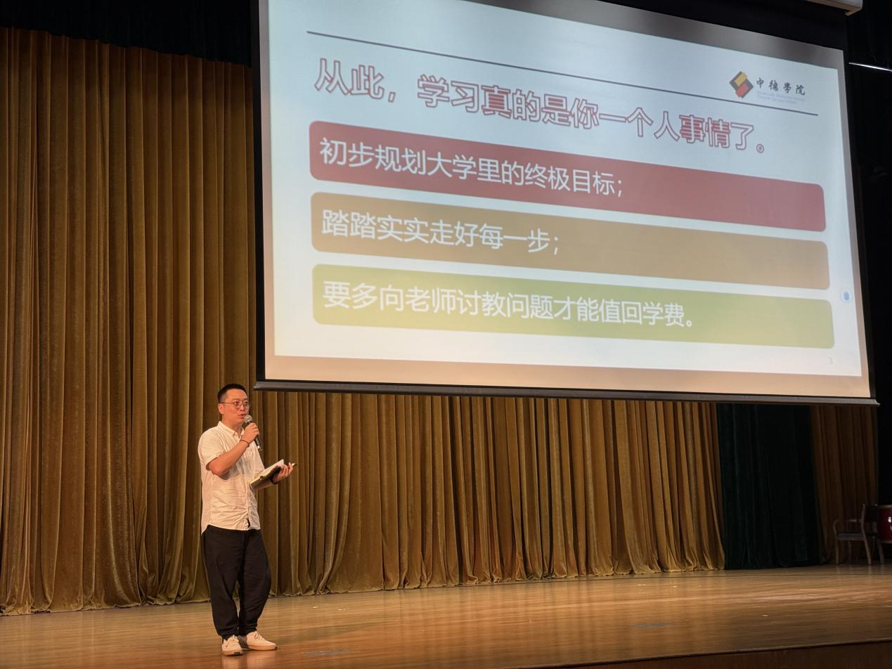 在2+3项目始业教育环节,黄骅老师详细讲解了国内两年的学习安排;孙昊晨老师分享了丰富的德语学习资源;徐菡子老师则结合教学经验,传授实用的德语学习方法;俞丹老师通过视频,展示了正在海外学习的学长学姐的真实感悟。最后,李成炜书记再次登台,结合自身求学经历,勉励同学们不畏挑战、勇敢追梦。