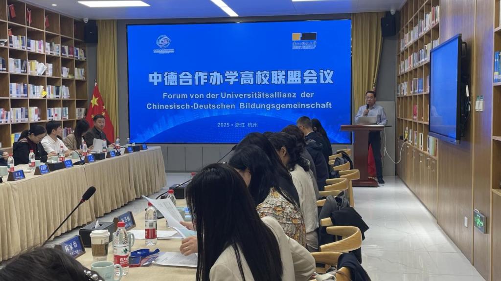 10月18至19日,由中德合作办学高校联盟主办、我院承办的第七届中德合作办学高校联盟论坛暨2025年度联盟理事会会议在我校小和山校区召开。上海理工大学、青岛科技大学、山西财经大学、江苏理工学院、重庆移通学院、上海电机学院、山东农业大学、烟台大学、河南大学、长春工业大学、浙江万里学院、山西晋中信息学院等12所高校的中德合作办学相关院、处负责人出席了本次论坛。我院执行院长韩晓亚、党委书记夏俊锁、党委副书记李成炜,及部分专业负责人参加了会议。夏俊锁书记代表学院对与会联盟成员的到来表示热烈欢迎。