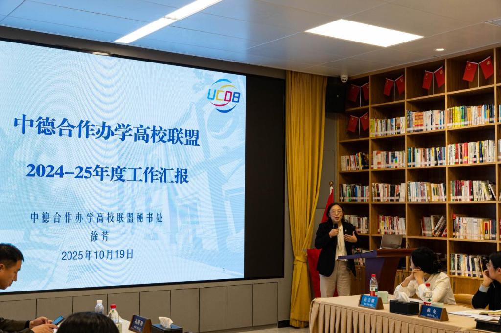 中德合作办学高校联盟秘书处秘书长、上海理工大学中德国际学院副院长/党委副书记徐芳做联盟年度工作汇报