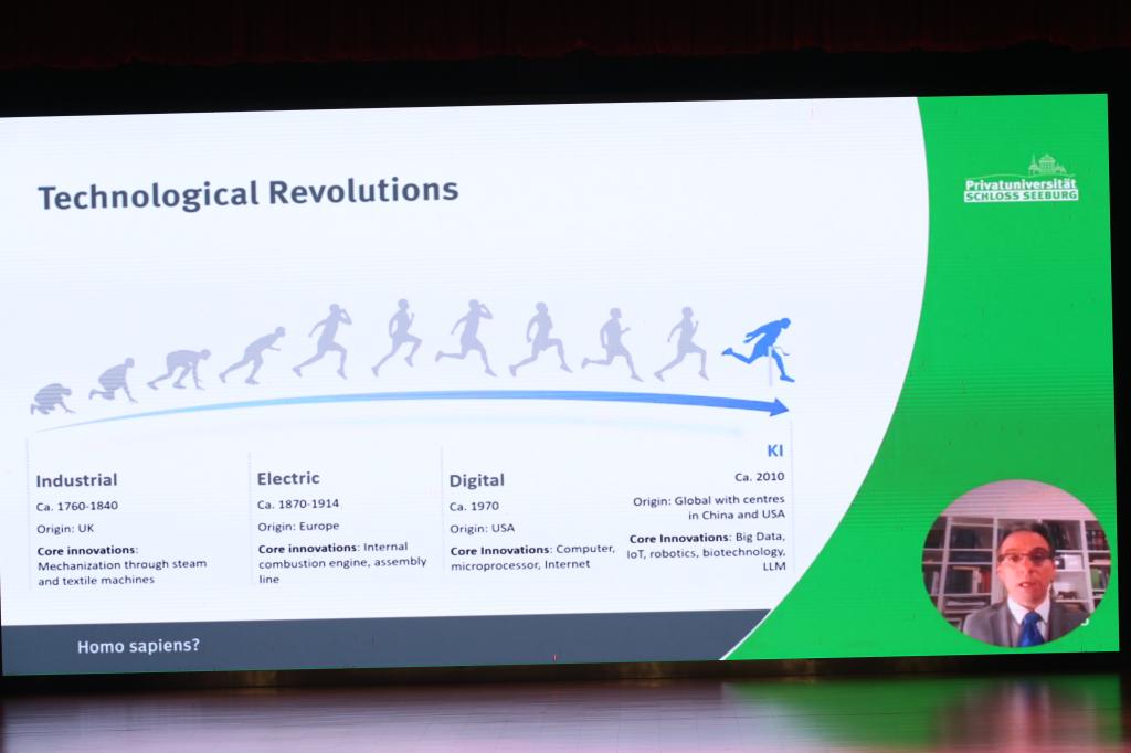 托马斯·施耐德霍弗在视频致辞中强调科技与文化的相互依存性以及工业发展、科技创新与高等教育紧密联系的重要性;他介绍了该校培养负责任领导力与可持续发展领域人才的实践,并肯定本次论坛对促进关键问题探讨的积极价值。