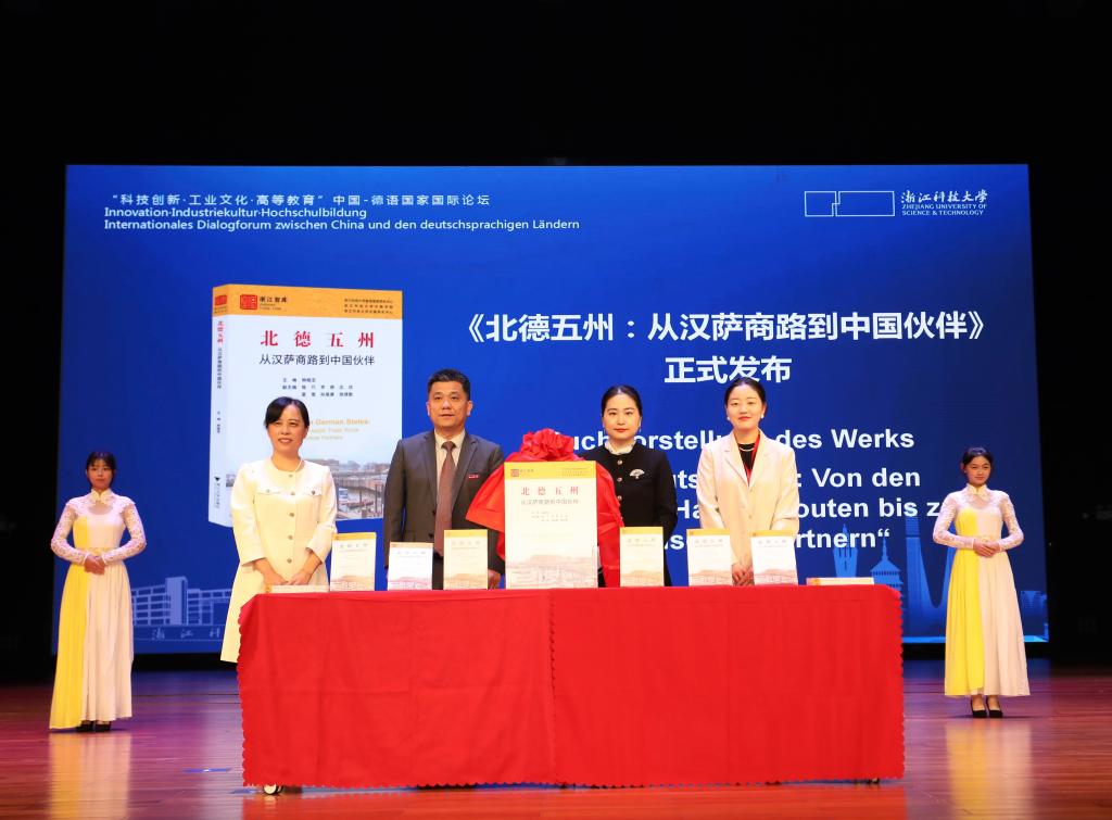 开幕式上还举行了学校德语国家研究最新成果《德国经济发展蓝皮书2024》与《北德五州:从汉萨商路到中国伙伴》的新书发布仪式。浙江大学出版社国际文化出版中心主任包灵灵,《德国经济发展蓝皮书2024》主编、成人视频 管理学院院长董颖,《北德五州:从汉萨商路到中国伙伴》主编,成人视频 、中德工程师学院执行院长韩晓亚分别致辞。徐华军、董颖、韩晓亚、包灵灵以及浙江大学出版社编辑史明露分别为新书发布揭幕。