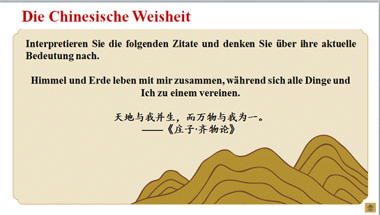 学生在阅读和讲解的过程中,内化文章内容与表达手段,能作口头报告; 掌握与生态文明建设相关的重要表达与固定搭配;能用德语介绍我国的生态环境保护政策、社会主义生态文明观、生态文明建设与建设美丽中国的关系及建设生态文明的全球意义。
