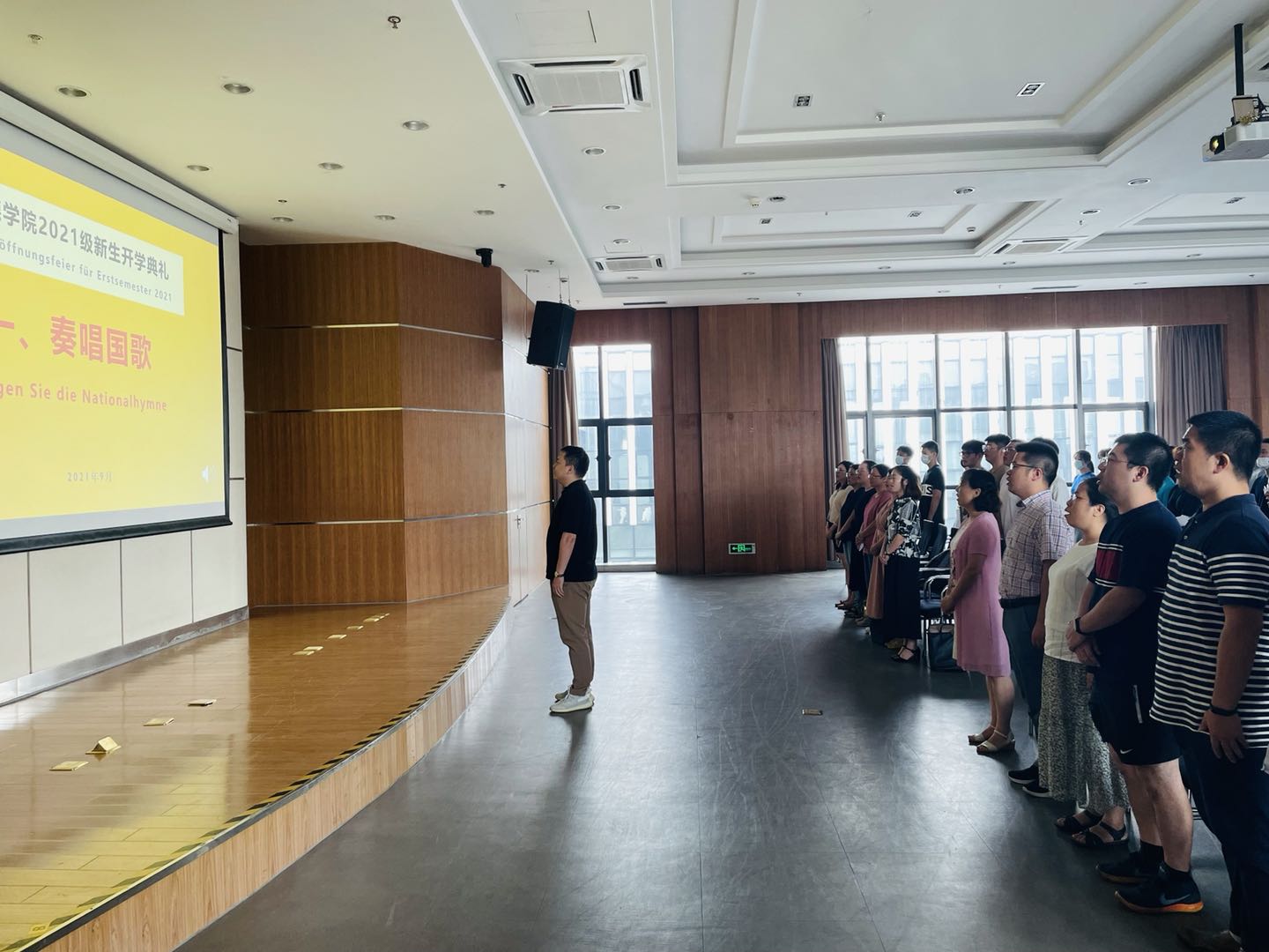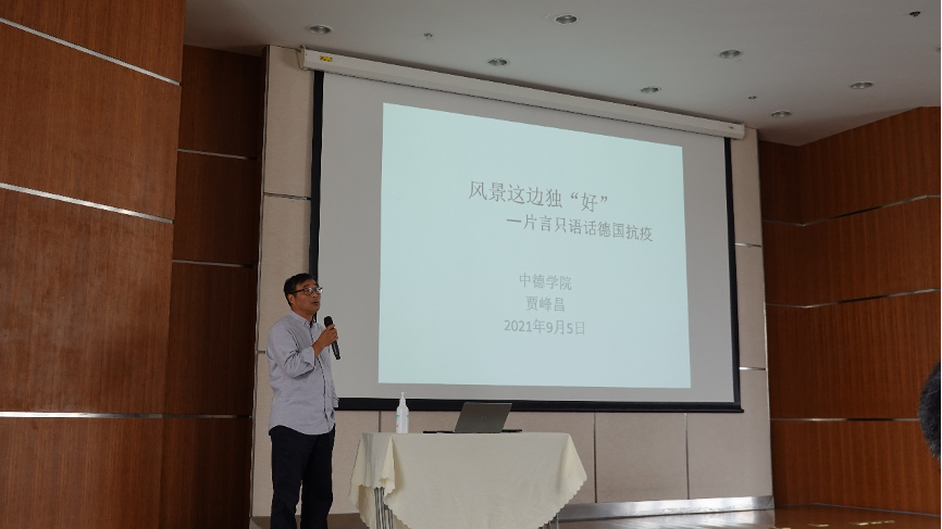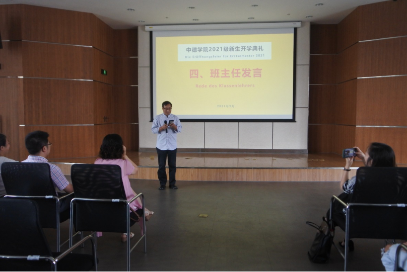 继开学典礼之后,德语专业和“2+3”项目的学生分场进行了始业教育活动。德语专业的学生们在系主任林方的带领下熟悉了专业概况、交换学校的相关情况、德语专业的相关活动和近年来国家/学校对德语专业的培养计划等。“2+3”项目的同学也在黄骅老师的指导下了解了中德联合培养的项目历史、合作院校、主要专业和选拔条件,并聆听了贾峰昌老师亲身在德国的抗疫故事,更是领略了朱冠文、褚静、孙昊晨老师带来的德语学习、德国生活方面的精彩分享,为日后的学习生活加油助力。