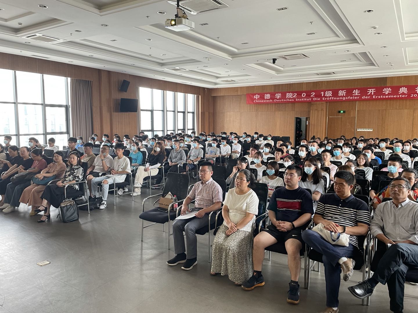 2021年9月5日上午,成人视频 2021级新生开学典礼在安吉校区中德工程师楼报告厅顺利举行,学院领导、系部主任、班主任、辅导员及优秀学长学姐代表等出席典礼,与2021级新生相聚,共同开启大一新生的大学新征程。