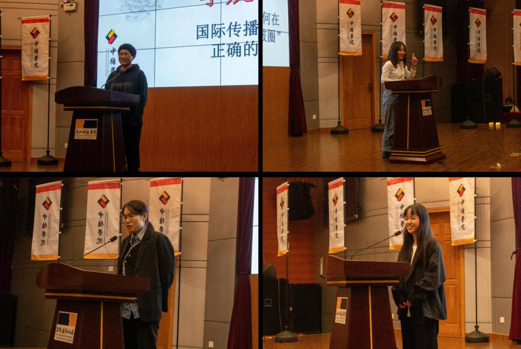 在参赛选手们的精彩演讲后,由各位评委老师对于演讲内容进行点评提问,提问紧紧围绕主题,也进一步深化了选手们对国际文化传播的理解,他们从容的应对能力和敏捷的思维能力更是给评委老师们留下了深刻的印象。老师与同学的交流,营造出了一种相互学习的和谐氛围。