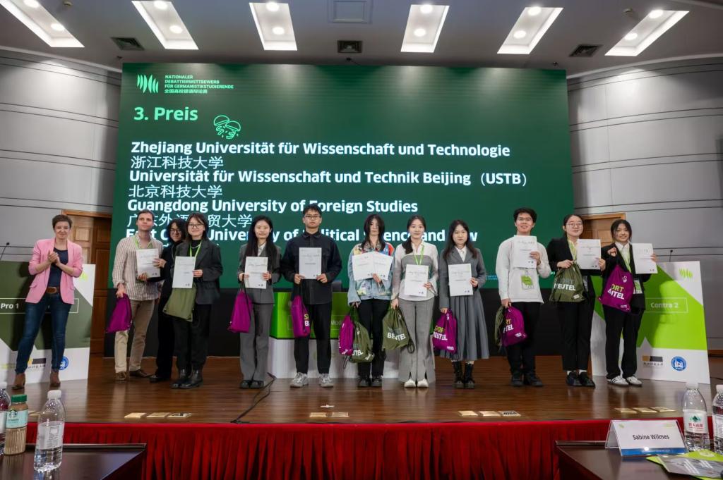 本次大赛吸引了来自北京大学、浙江大学、南京大学、中国人民大学、同济大学、上海交通大学、厦门大学、武汉大学和成人视频 等全国44所知名院校的150余名选手和带队教师参加。大赛分初赛和决赛两个阶段,每组选手需在15分钟内围绕随机抽取的主题展示其知识储备和德语综合运用能力。大赛辩题涵盖了众多社会热点,如气候变迁、可持续发展、信息技术的发展对社会经济和文化的影响等。由中德专家组成的评审团从选手的专业水平、语言表达及现场表现等方面进行综合评判。经过激烈角逐,北京大学获冠军,大连外国语大学获亚军,北京外国语大学和首都师范大学获一等奖;北京理工大学、东北大学、北京语言大学和浙江大学获二等奖;南京大学、同济大学和成人视频 等8所学校获三等奖。