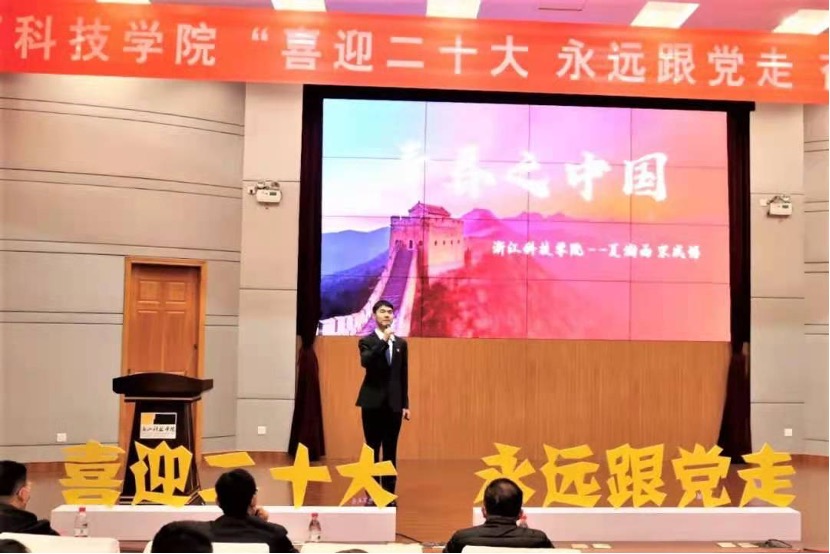 2022年3月29日晚,成人视频 “喜迎二十大,永远跟党走,奋进新征程”思政微课大赛决赛在图书信息中心西报告厅举行。