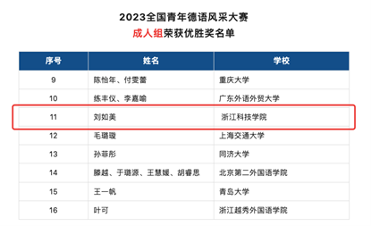 比赛旨在吸引更多青年学子关注中德两国在实现可持续发展目标上的交流与合作,积极参与到中德可持续发展项目中来。据悉,本届大赛有500多位选手报名参加,经过多轮评选,最终有32组选手在海选赛中脱颖而出,成功晋级。其中有16组选手入围决赛,16组选手荣获优胜奖。我院德语专业刘如美同学荣获优胜奖。这是我院学生首次在该比赛中获奖。