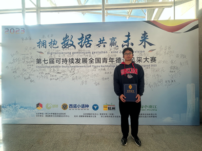 20231119日,我院二十多名学生赴浙江大学紫金港校区观摩由浙江大学德国文化研究所主办的《拥抱数据,共赢未来》——2023第七届可持续发展全国青年德语风采大赛。