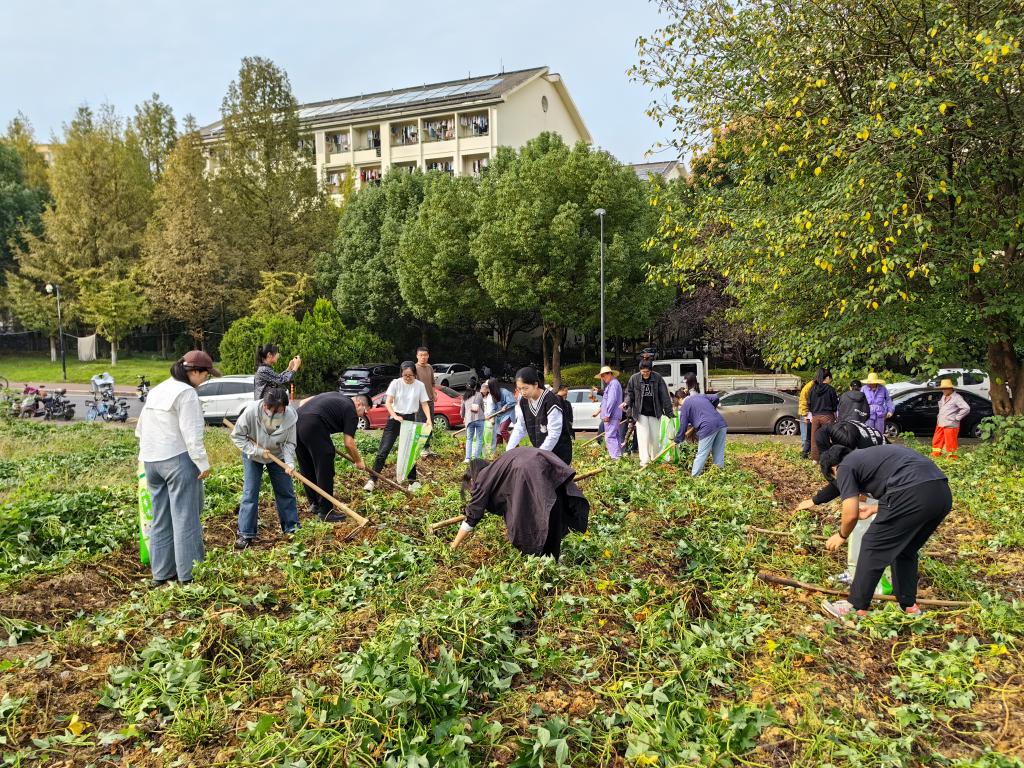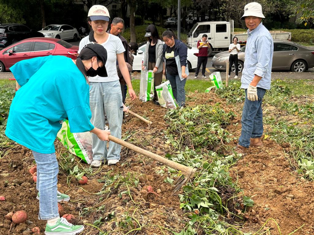 十月,正直红薯收获的季节,成人视频 学生党支部联合后勤服务中心公寓物业党支部于本周三下午两点联合开展了【捧起“薯”于我们的新生 收获展望未来的果实】主题党日活动。本次活动由成人视频 党委副书记茹潇潇老师带队,成人视频 德语系全体学生党员与预备党员共同参与,在后勤老师的指导下赴西和公寓的田间开展挖红薯活动,体验劳动和收获的快乐。