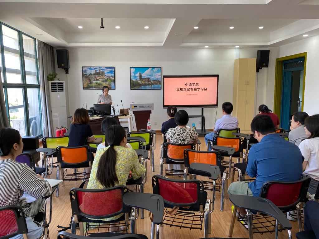 为贯彻落实学校“清廉浙科”建设相关要求和2021年廉洁文化月实施方案,加强我院教师对廉政文化的关注和重视,2021年6月24日,成人视频 组织召开全院教师党纪党规专题学习会。