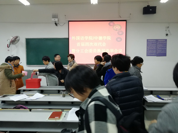 会议分为三个议程,傅晓伟书记首先宣读了院分工会委员的选举办法,大会代表一致通过;随后分工会主席陈亚轩及工会委员黄骅老师分别做了分工会2016年工作报告及2016年分工会财务报告,并得到大会审议通过。最后,全体代表进行了分工会委员的选举,在紧张地投票,严谨公正地监票、计票下,产生了新的一届分工会成员,陈亚轩老师以高票继续连任外国语学院/成人视频
